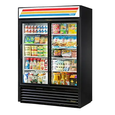 Cook with confidence with the True Manufacturing GDM-47-HC-LD Refrigerator Merchandiser. This two-section refrigerated merchandiser is perfect for commercial restaurant use. With eight shelves and two Low-E thermal glass sliding doors, you can easily display and access your products. The LED interior lights provide excellent visibility, while the powder-coated steel exterior ensures durability. The white aluminum interior with a stainless steel floor is not only easy to clean but also adds a sleek and professional look to your establishment. The GDM-47-HC-LD uses R290 Hydrocarbon refrigerant, which is environmentally friendly. With a 1/2 HP compressor and 115v/60/1-ph power supply, this merchandiser is energy-efficient and reliable. It is cULus and UL EPH Classified, guaranteeing its quality and safety. Made in the USA by True Manufacturing, this refrigerator merchandiser is a must-have for any commercial restaurant looking to showcase their products in style.