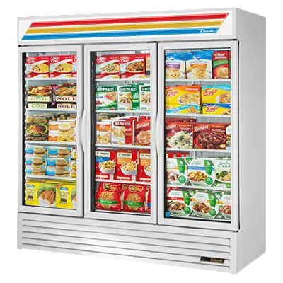 Fuel your passion for cooking with the True Manufacturing GDM-72F-HC~TSL01 Freezer Merchandiser. This three-section freezer is perfect for commercial restaurant use, offering ample space and convenient organization for all your frozen goods. With 12 shelves and three triple-pane thermal glass hinged doors, you can easily showcase your products while keeping them at a consistent -10F temperature. The LED interior lights provide excellent visibility, allowing your customers to see the contents clearly. The powder-coated steel exterior and white interior with a stainless steel floor not only ensure durability but also give the freezer a sleek and professional look. Made in the USA, this freezer uses R290 Hydrocarbon refrigerant and has a 1 HP compressor, guaranteeing efficient and reliable performance. With its cULus and UL EPH Classified certifications, you can trust that this True Manufacturing Freezer Merchandiser meets the highest standards of quality and safety. Upgrade your restaurant's freezing capabilities with this top-of-the-line freezer.