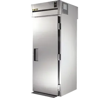 Unleash culinary creativity with the True Manufacturing STG1RRT89-1S-1S Refrigerator, Roll-Thru. This top-of-the-line refrigerator is designed to meet the demanding needs of commercial restaurants. With its stainless steel front and ramps, as well as aluminum sides and interior, this unit is built to withstand the rigors of a busy kitchen. The roll-thru design allows for easy access and efficient workflow, accommodating a 27"W x 29"D x 72"H cart (not included). The digital temperature control ensures precise temperature management, while the cam-lift hinges and locks provide added security. Made in the USA, this refrigerator is cULus and UL EPH Classified, guaranteeing its quality and reliability. With a 1/3 HP motor and 8.9 amps, this unit delivers powerful performance. Trust True Manufacturing to provide you with a refrigerator that is not only functional but also durable, making it the perfect addition to any commercial restaurant.