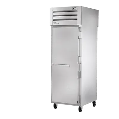 Unleash culinary creativity with the True Manufacturing STR1RPT-1S-1G-HC Refrigerator, Pass-Thru. This top-of-the-line refrigerator is designed to meet the demanding needs of commercial restaurants. With its stainless steel front and sides, it not only looks sleek and professional but also ensures durability and easy cleaning. The pass-thru design, featuring a stainless steel door front and a glass door rear, allows for easy access and visibility of the contents from both sides. The cam-lift hinges and digital temperature control provide convenience and precision in maintaining the perfect storage conditions for your ingredients. The LED interior lights illuminate the interior, making it easy to locate items even in low-light settings. Equipped with 5" castors, this refrigerator can be easily moved for cleaning or rearranging. Made in the USA and using R290 Hydrocarbon refrigerant, this True Manufacturing refrigerator is not only reliable but also environmentally friendly. Upgrade your restaurant's storage capabilities with the True Manufacturing STR1RPT-1S-1G-HC Refrigerator, Pass-Thru.
