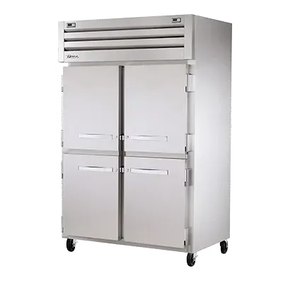 Take your kitchen to the next level with the True Manufacturing STR2DT-4HS Refrigerator Freezer. This top-of-the-line reach-in unit is designed to meet the demands of a busy commercial restaurant. With its four stainless steel half doors, cam-lift hinges, and locks, you can easily access and secure your ingredients and prepared dishes. The digital temperature control ensures precise temperature management, while the LED interior lights provide excellent visibility. The stainless steel front, sides, and interior not only give the unit a sleek and professional look but also make it easy to clean and maintain. Equipped with 5" castors, this refrigerator freezer is easy to move and position wherever you need it. Made in the USA and UL EPH Classified, you can trust in the authenticity and quality of this True Manufacturing product. Upgrade your kitchen with the STR2DT-4HS and experience the convenience and efficiency it brings to your restaurant operations.
