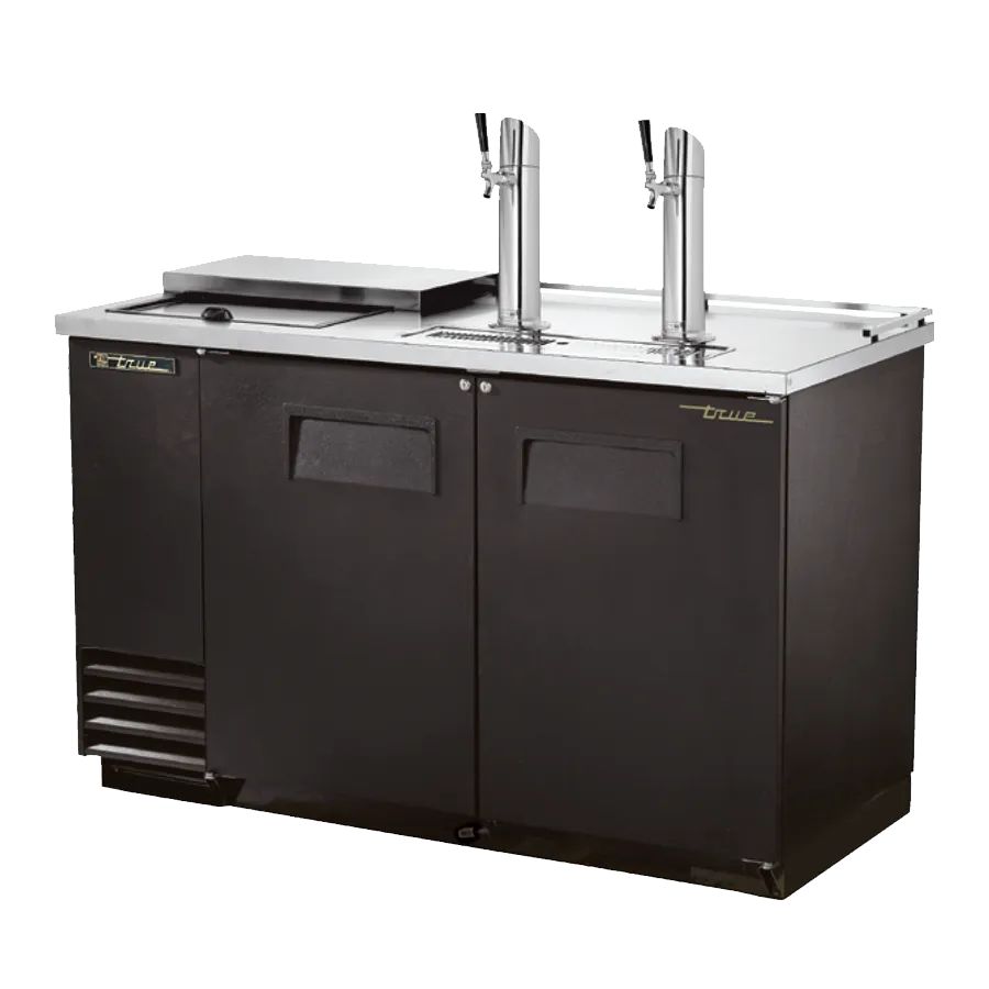 Transform your food service with the True Manufacturing TDD-2CT-HC Draft Beer Cooler. This commercial-grade cooler is designed to meet the demands of a busy restaurant or bar. With a capacity for two half kegs, it ensures that you always have a cold, refreshing beer on tap for your customers. The stainless steel counter top and lid provide a durable and easy-to-clean surface, while the solid hinged doors with locks keep your inventory secure. The adjustable wire shelf allows for flexible storage options, and the LED interior light illuminates the contents for easy visibility. The insulated beer columns with a single faucet draft arm ensure that your beer stays cold and pours perfectly every time. Made in the USA and ENERGY STAR certified, this cooler is not only reliable but also energy-efficient. Upgrade your beverage service with the True Manufacturing TDD-2CT-HC Draft Beer Cooler.