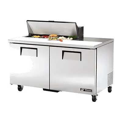 Optimize your kitchen efficiency with the True Manufacturing TSSU-60-10-HC Refrigerated Counter, Sandwich / Salad Unit. This top-of-the-line unit is designed to meet the demands of a busy commercial restaurant. With its stainless steel insulated cover and 11-3/4"D cutting board, you can easily prepare and assemble sandwiches and salads in no time. The unit comes with (10) 1/6 size poly pans, providing ample space for storing ingredients. The stainless steel top, front, and sides, along with the aluminum back, ensure durability and easy cleaning. The aluminum interior with a stainless steel floor adds to its longevity. The unit features (2) full doors and (4) shelves, allowing for organized storage of food items. Equipped with 5" castors, this unit is easy to move around for cleaning or rearranging. The TSSU-60-10-HC runs on R290 Hydrocarbon refrigerant and has a 1/3 HP compressor, ensuring efficient cooling. Made in the USA, this True Manufacturing Refrigerated Counter is cULus and UL EPH Classified, guaranteeing its quality and safety. Upgrade your kitchen with this reliable and high-performing unit.