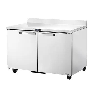 Empower your kitchen staff with the True Manufacturing TWT-48-HC~SPEC3 Refrigerated Counter. This work top refrigerator is a must-have for any commercial restaurant. With its SPEC Package 3, it offers a 16-gauge stainless steel top with a rear splash, as well as a stainless steel front, sides, and back, ensuring durability and easy cleaning. The stainless steel interior and heavy-duty stainless steel doors further enhance its longevity. The electronic temperature control with a digital display allows for precise temperature management, while the four PVC coated wire shelves provide ample storage space. The TWT-48-HC~SPEC3 also features a door lock for added security. With its 5" castors and rear mount, this refrigerator is easy to move and position. Made in the USA, this True Manufacturing work top refrigerator is cULus, UL EPH Classified, and CE certified, guaranteeing its quality and safety. Upgrade your kitchen with this reliable and efficient refrigerated counter.