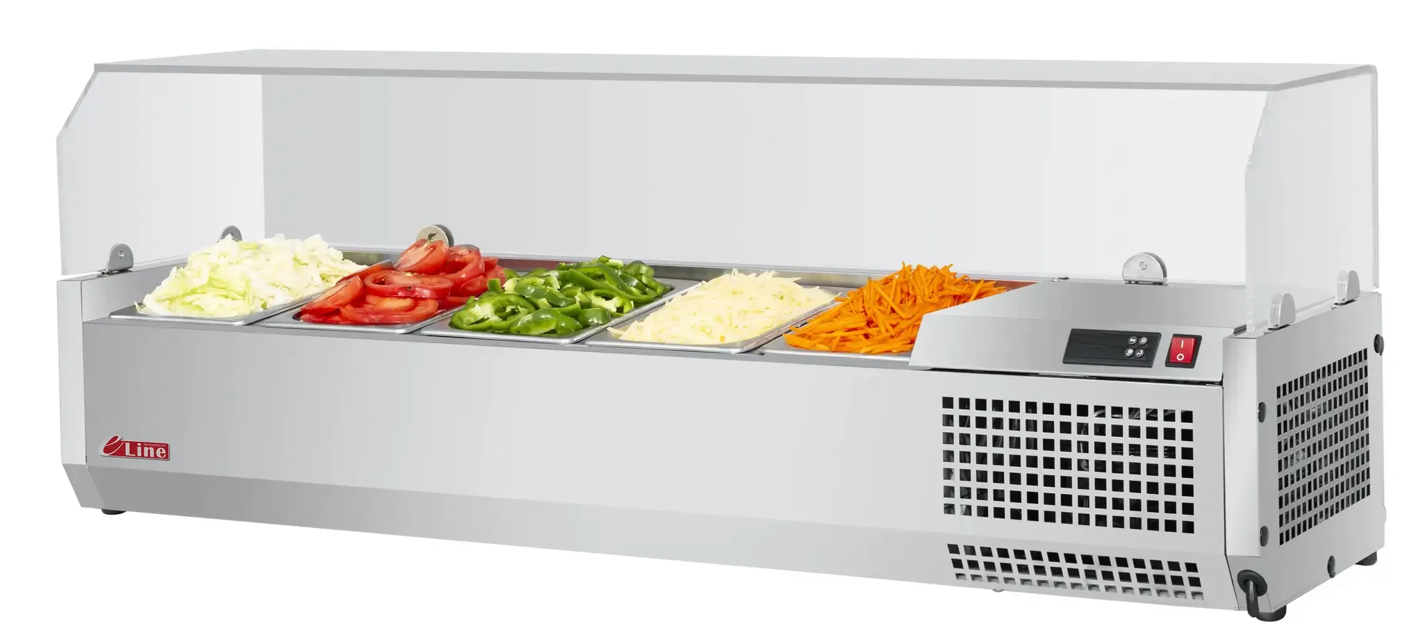 Upgrade your restaurant kitchen with the Turbo Air CTST-1200G-N Counter Top Salad Table. This high-quality salad table from Turbo Air is designed to meet the demands of a busy commercial restaurant. With a capacity of 5 pans, you can easily store and display a variety of fresh salads and ingredients for your customers to choose from. The compact dimensions of 47-1/4 x 13-1/4 x 8-7/8 make it perfect for small kitchen spaces. The Turbo Air CTST-1200G-N features a powerful 1/6 HP compressor, ensuring that your salads stay fresh and cool throughout the day. The plug type is NEMVA 5-15P, making it easy to install and use. With its sleek design and reliable performance, this counter top salad table is a must-have for any commercial restaurant looking to enhance their salad offerings. Upgrade your kitchen today with Turbo Air.