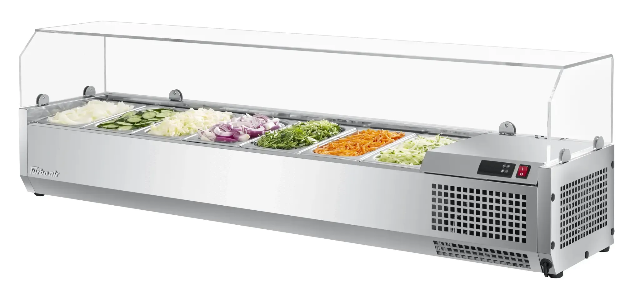 Invest in superior quality with the Turbo Air CTST-1500G-N Counter Top Salad Table. This top-of-the-line salad table is a must-have for any commercial restaurant looking to enhance their salad preparation and presentation. With a capacity for 9 pans, you can easily store and display a variety of fresh ingredients, ensuring your customers have a wide selection to choose from. The compact dimensions of 70-7/8 x 13-1/4 x 8-7/8 make it perfect for smaller kitchen spaces, while still providing ample workspace for your staff. The Turbo Air CTST-1500G-N is equipped with a powerful 1/6 HP compressor, ensuring that your ingredients stay fresh and cool at all times. With a voltage of 115/60/1 and a plug type of NEMVA 5-15P, this salad table is easy to install and operate. Invest in the Turbo Air CTST-1500G-N Counter Top Salad Table and elevate your salad game to new heights.
