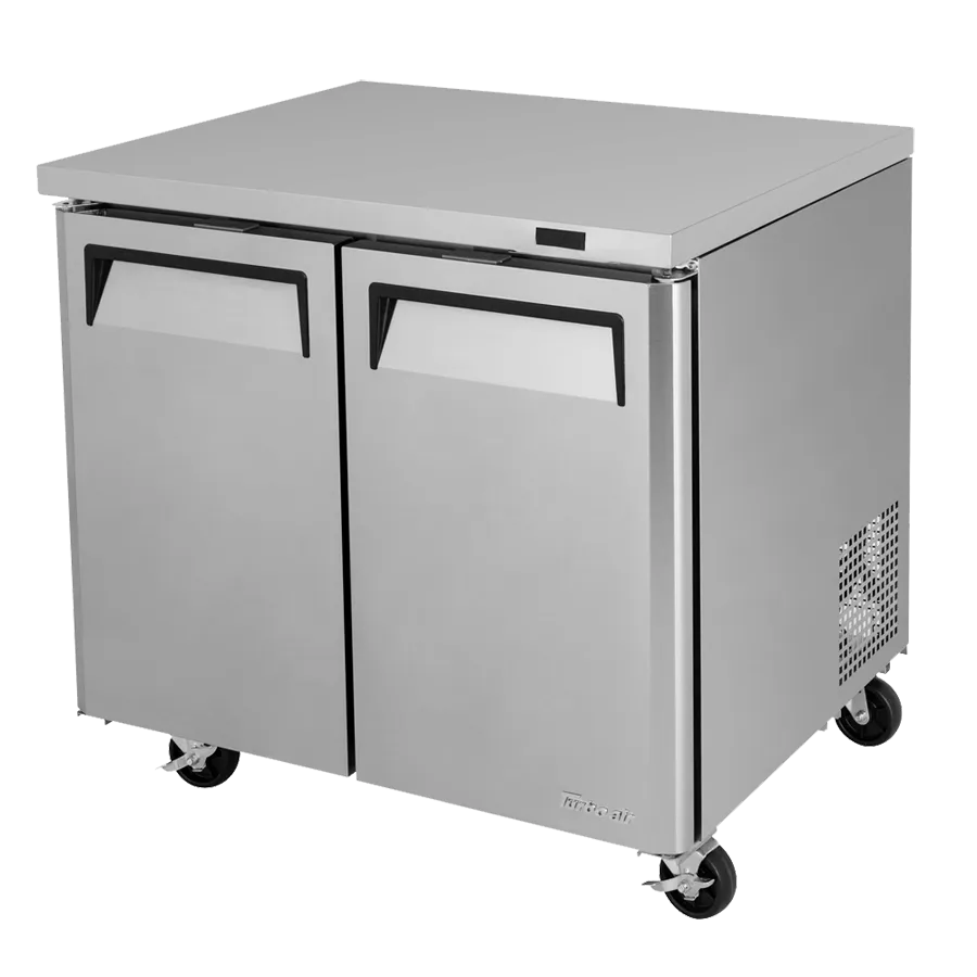 Unleash your kitchen's potential with the Turbo Air MUF-36-N Freezer. This undercounter reach-in freezer is designed to optimize space and efficiency in your commercial restaurant. With a self-contained rear mount refrigeration system and self-cleaning condenser, this freezer ensures reliable performance and easy maintenance. The two-section design provides 9.0 cu. ft. of storage space, allowing you to keep a wide variety of ingredients and products at the perfect temperature. The swing doors and adjustable heavy-duty wire shelves make it easy to organize and access your items. The stainless steel construction of the top, front, and sides ensures durability and a sleek appearance, while the aluminum interior and stainless steel floor make cleaning a breeze. The LED interior lighting and fan control provide excellent visibility and airflow. With its R290 Hydrocarbon refrigerant and energy-efficient design, this freezer is not only reliable but also environmentally friendly. Upgrade your kitchen with the Turbo Air MUF-36-N Freezer and experience the convenience and performance it brings to your restaurant.
