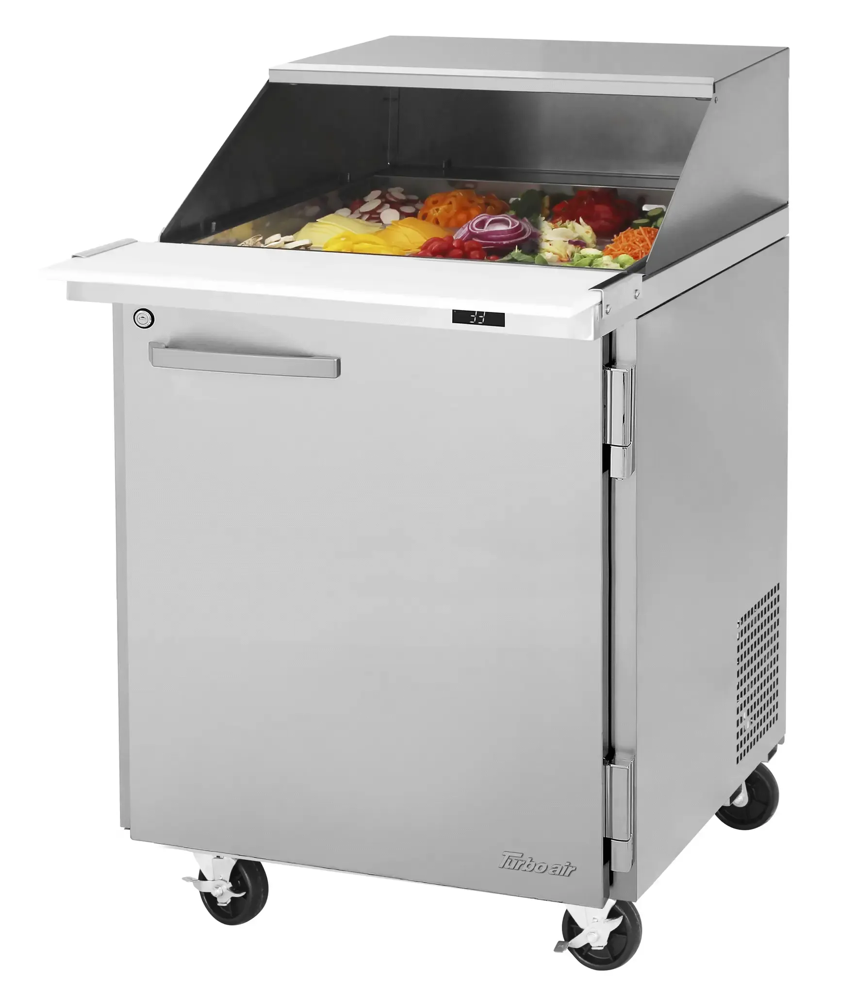 Mobilize your kitchen with the Turbo Air PST-28-12-N-SL Prep Table. This high-quality prep table from Turbo Air is designed to meet the demands of a busy commercial restaurant. With its sleek design and durable construction, this prep table is built to last. The PST-28-12-N-SL features a voltage of 115/60/1 and a plug type of NEMA 5-15P, making it easy to install and use. The refrigerant used is 290, which ensures that your ingredients stay fresh and cool. With its compact dimensions of 27-1/2 x 34 x 39-1/8, this prep table is perfect for smaller kitchens. Don't miss out on the Turbo Air PST-28-12-N-SL Prep Table and take your restaurant to the next level.