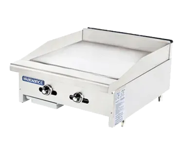 Create culinary magic with the Turbo Air TATG-24 Gas Countertop Griddle. This high-quality griddle is perfect for commercial restaurant use, offering exceptional performance and durability. The stainless steel front and side panels not only provide a sleek and professional appearance but also ensure long-lasting use in a busy kitchen environment. The built-in stainless steel splash guard helps to contain any splatters or spills, keeping your cooking area clean and safe. The 1" thick highly polished steel griddle plate provides even heat distribution and excellent heat retention, allowing you to cook a variety of dishes to perfection. With two aluminized U-shaped burners and thermostat controls for every 12", you have precise control over the cooking temperature. The front grease trough and removable grease pan make cleaning up a breeze. The Turbo Air TATG-24 Gas Countertop Griddle is a reliable and efficient addition to any commercial kitchen.
