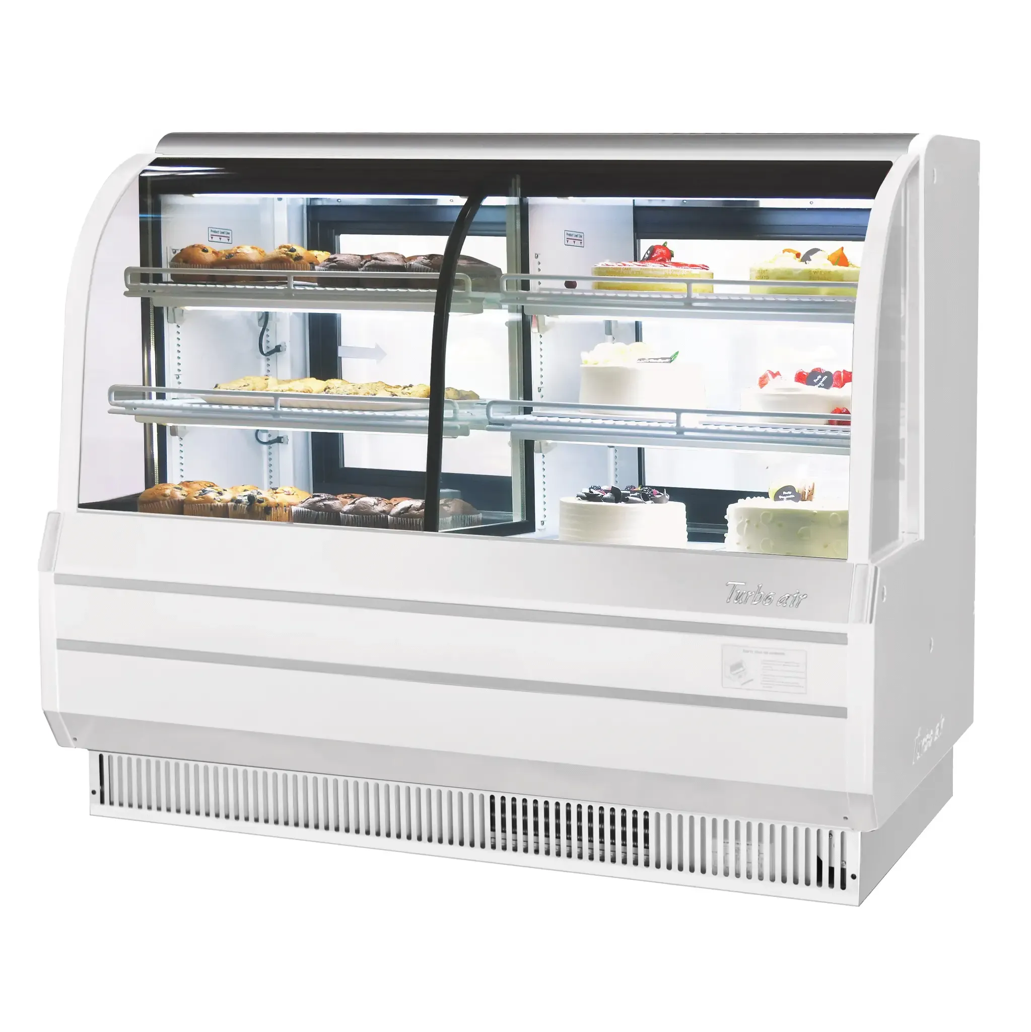 Equip your kitchen for success with the Turbo Air TCGB-60CO-W(B)-N Display Case. This refrigerated bakery case is designed to meet the needs of commercial restaurants, offering a spacious 60 1/2" width and two 10.3 cu.ft. compartments. The temperature range of 33F - 41F ensures that your baked goods stay fresh and delicious. The self-cleaning condenser equipped in this display case helps to prevent dust accumulation and maintain optimal performance, saving you time and money on maintenance. The curved front tempered glass provides an attractive display for your bakery items, while the non-peel anti-rust coated paint steel exterior ensures durability and longevity. The four adjustable cantilevered wire shelves allow for flexible storage options, and the stainless steel floor and air flow grille make cleaning a breeze. The Turbo Air TCGB-60CO-W(B)-N Display Case is equipped with a rear access compressor compartment and uses R290 Hydrocarbon refrigerant, making it an environmentally friendly choice. With its 1/3 HP motor and 115v/60/1-ph power supply, this display case is both powerful and energy-efficient. Trust Turbo Air to provide you with a high-quality refrigerated bakery case that will enhance your restaurant's efficiency and appeal.