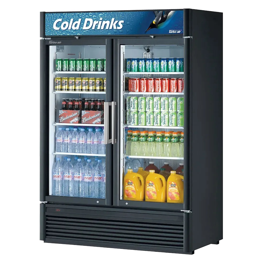 Culinary excellence in every dish starts with the Turbo Air TGM-47SD-N Refrigerator Merchandiser. This super deluxe glass merchandiser is designed to meet the needs of commercial restaurants, offering a spacious 41.71 cu. ft. capacity and two-section layout. The self-contained unit features a self-cleaning condenser device, ensuring optimal performance and reducing maintenance requirements. With its double pane Low-E glass doors equipped with locks, you can showcase your delectable offerings while keeping them secure. The eight adjustable PE coated wire shelves provide ample space for organizing and displaying your products. The exterior digital thermometer and controller allow for precise temperature control, while the door opening alarm ensures food safety. The self-diagnostic monitoring system and automatic malfunction detection provide peace of mind, while the Turbo cooling and hot gas condensate system maintain consistent temperatures. The LED interior lighting and LGP advertising panel create an attractive display, enticing customers to indulge in your culinary creations. With its ENERGY STAR certification and use of R290 Hydrocarbon refrigerant, this refrigerator merchandiser is not only efficient but also environmentally friendly. Trust Turbo Air to elevate your restaurant's refrigeration needs.