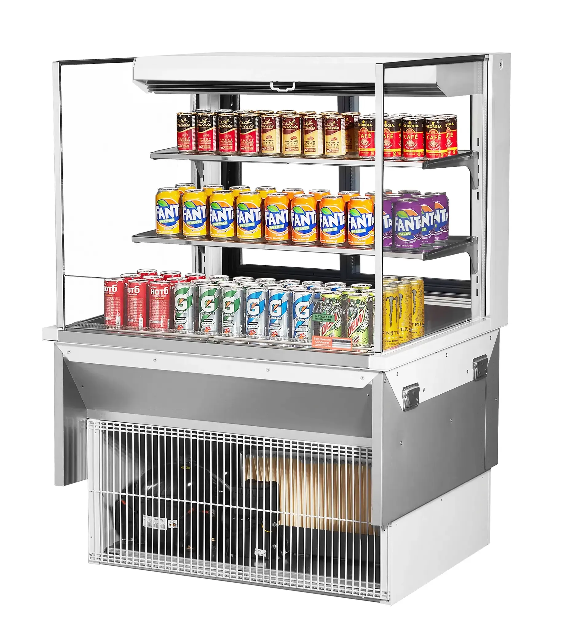 Streamline your restaurant cooking operations with the Turbo Air TOM-36L-UFD-W(B)-3SI-N Open Display Case. This low-profile, drop-in type case is designed to enhance impulsive sales with its modern and attractive design. The case features glass side panels, two glass shelves, and perforated glass doors and open top for improved airflow. The self-cleaning condenser and hydrocarbon refrigerants ensure efficient and eco-friendly operation. The case is foamed with polyurethane, high-density cell insulation, making it CFC-free and energy-saving. With LED interior lighting and a sliding rear door for easy product loading and unloading, this open display case is perfect for showcasing your delicious food and beverages. The standard back-guard improves airflow, while the bottom stainless steel solid shelf and glass shelf provide ample storage space. Available in white and black color options, this Turbo Air Open Display Case is a must-have for any commercial restaurant.