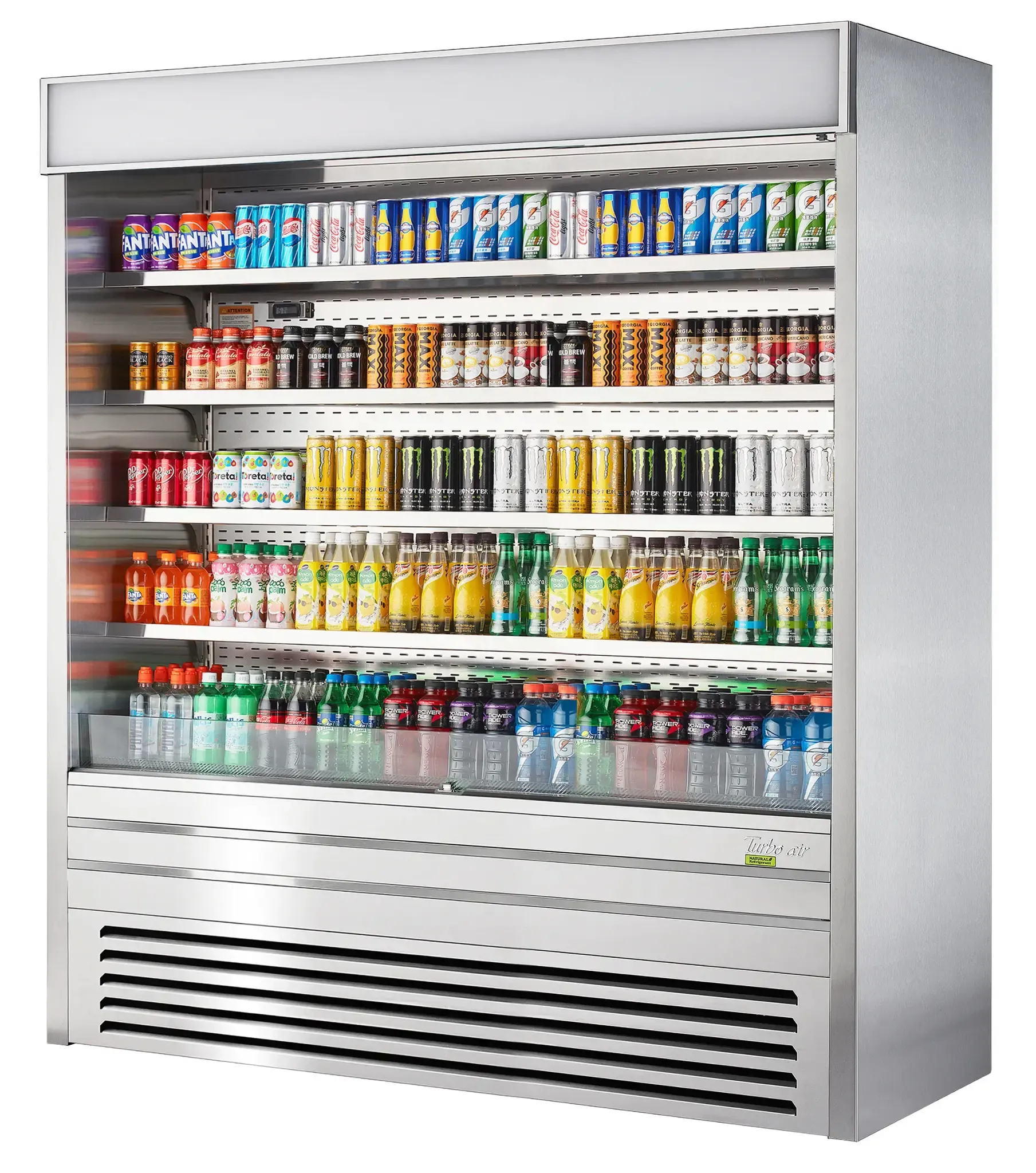 Deliver food perfection with the Turbo Air TOM-72ES-N Open Display Merchandiser. This sleek and modern merchandiser is designed to enhance impulsive sales in a commercial restaurant setting. With its 72" length and vertical air curtain, it provides ample space and optimal airflow to showcase your delicious food offerings. The stainless steel exterior and interior not only give it a professional look but also make it durable and easy to clean. The self-cleaning condenser ensures that the unit operates efficiently, while the hydrocarbon refrigerants contribute to energy savings. The standard back-guard improves airflow, and the high-density cell insulation keeps your food fresh. With a front air intake and rear air discharge, this merchandiser ensures consistent cooling throughout. Plus, the energy-saving night curtain is included as a standard feature. Trust Turbo Air, the leading vendor in open display merchandisers, to deliver the perfect solution for your restaurant's food display needs.
