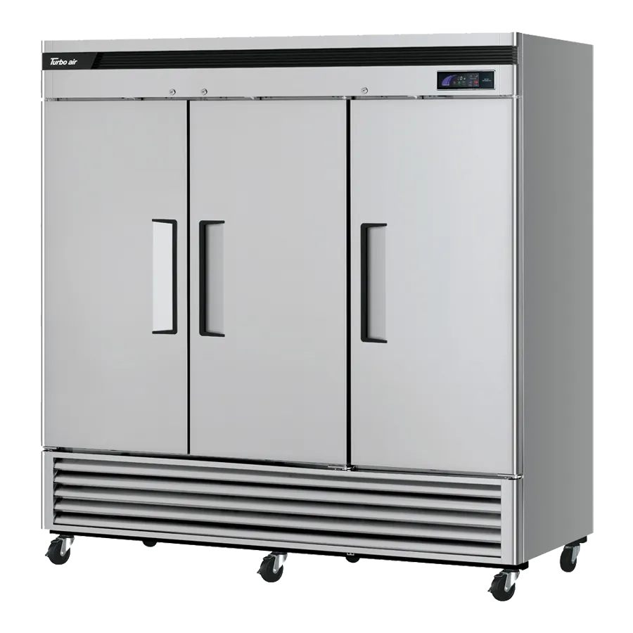 Unleash your inner chef with the Turbo Air TSF-72SD-N Freezer, Reach-In. This super deluxe freezer is perfect for commercial restaurant use, offering a spacious 63.8 cu. ft. capacity to store all your ingredients and frozen goods. The stainless steel front and side, along with the galvanized back and top of the cabinet, ensure durability and easy cleaning. With three hinged solid doors featuring recessed handles, accessing your items is a breeze. The nine adjustable stainless steel wire shelves provide ample storage space and organization options. The exterior LED digital thermometer allows you to monitor the temperature at a glance, while the door-open alarm beeps to prevent any accidental spoilage. The self-diagnostic monitoring system and smart defrost feature ensure optimal performance and energy efficiency. The Turbo Air TSF-72SD-N also comes equipped with a self-cleaning condenser and door locks for added convenience and security. With its bottom mount compressor and R290 Hydrocarbon refrigerant, this freezer is not only reliable but also environmentally friendly. Trust Turbo Air to deliver exceptional quality and performance for your commercial kitchen needs.