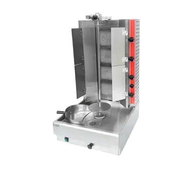 Enhance functionality effectively with the Uniworld Foodservice Equipment VBR-2EF Vertical Broiler (Gyro), Gas. Designed for commercial restaurant use, this vertical broiler is a game-changer in the kitchen. With its adjustable burner panel and four independent controls, you have complete control over the cooking process. The electric motor with an on/off switch ensures consistent rotation at 2.5 R.P.M., allowing for even cooking of the meat. The skewer support can hold more than 35 lbs. of meat, making it perfect for high-volume establishments. Made with a stainless steel body, this broiler is durable and easy to clean. It operates on natural gas but can be converted to propane if needed. With a powerful 25000 BTU, this broiler delivers exceptional results every time. Upgrade your restaurant's gyro game with the Uniworld Foodservice Equipment VBR-2EF Vertical Broiler (Gyro), Gas.