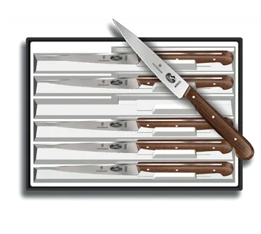 Upgrade Your Culinary Instrument with the Victorinox Swiss Army, 5.2000.12-X4, Knife, Steak. This high-quality knife is a must-have for any commercial restaurant. With its spear tip blades and rosewood handles, it offers precision and durability, ensuring that every cut is perfect. Whether you're slicing through tender steaks or dicing vegetables, this knife will exceed your expectations. Its sleek design and ergonomic handle make it comfortable to use for extended periods, reducing fatigue in a fast-paced kitchen environment. The 4-1/2" blade is the ideal size for handling various ingredients, making it versatile for any culinary task. Upgrade your kitchen arsenal with the Victorinox Swiss Army Knife and experience the difference it makes in your restaurant's efficiency and culinary creations.