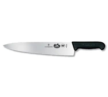 Elevate Your Restaurant's Culinary Journey with the Victorinox Swiss Army, 5.2003.31, Chef Knife. This high-quality knife is a must-have for any commercial kitchen. With its 12" blade and 2-1/4" width at the handle, it provides the perfect balance of precision and control. The black Fibrox Pro handle is slip-resistant, ensuring a secure grip even in the busiest of kitchens. Designed by Victorinox Swiss Army, a trusted name in cutlery, this knife is built to last. It is NSF certified, guaranteeing its safety and hygiene standards. Whether you're slicing, dicing, or chopping, this chef knife will make your tasks effortless and efficient. Its versatility and durability make it ideal for everyday use in a busy restaurant setting. Invest in the Victorinox Swiss Army, 5.2003.31, Chef Knife and experience the difference it can make in your kitchen.