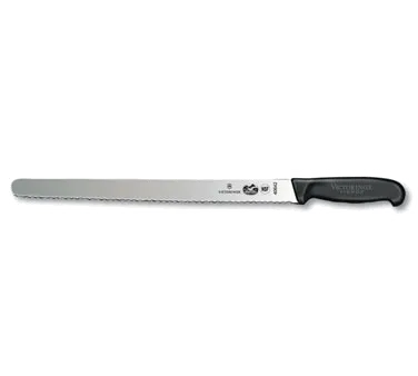 Unlock Culinary Excellence with the Victorinox Swiss Army, 5.4233.36 Slicer Knife. This professional-grade knife is a must-have for any commercial restaurant. With its 14" wavy edge and 1-1/4" width at the handle, it effortlessly slices through meats, vegetables, and more, making food preparation a breeze. The black Fibrox nylon handle is not only slip-resistant but also comfortable to hold, ensuring precision and control while cutting. Packaged in a convenient clamshell/peggable package, this knife is ready to use right out of the box. It is NSF certified, guaranteeing its quality and safety for commercial use. Whether you're a chef, a butcher, or a restaurant owner, the Victorinox Swiss Army Slicer Knife is the perfect tool to elevate your culinary creations. Invest in this reliable and durable knife and experience the difference it makes in your kitchen.