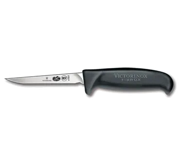 Culinary Perfection Made Simple with the Victorinox Swiss Army, 5.5903.11M, Knife, Boning. This professional-grade knife is a must-have for any commercial restaurant. With its 4-1/2" boning blade and medium black Fibrox Pro handle, it offers exceptional precision and control when deboning poultry. The slip-resistant handle ensures a secure grip, even in busy kitchen environments. Designed by Victorinox Swiss Army, a trusted name in cutlery, this knife is built to withstand the demands of a commercial kitchen. Its NSF certification guarantees its safety and hygiene standards, making it suitable for professional use. Whether you're a chef or a butcher, this boning knife will make your tasks easier and more efficient. Elevate your culinary skills with the Victorinox Swiss Army, 5.5903.11M, Knife, Boning.