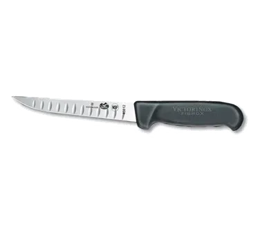 Effortless Culinary Excellence with the Victorinox Swiss Army, 5.6023.15, Knife, Boning. This high-quality boning knife is a must-have tool for any commercial restaurant. With its 6" granton edge blade, it effortlessly glides through meat, making it perfect for deboning and trimming. The wide, stiff blade provides stability and control, ensuring precise cuts every time. The black Fibrox Pro handle offers a comfortable grip, even when working for extended periods. Made from high carbon steel, this knife is durable and long-lasting, with excellent edge retention. The slip-resistant handle ensures safety in a fast-paced kitchen environment. NSF certified, this knife meets the highest standards of quality and hygiene. Whether you're a professional chef or a home cook looking for professional-grade tools, the Victorinox Swiss Army Boning Knife is the perfect choice for achieving culinary excellence.