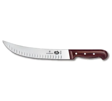 Create Culinary Magic with Ease through the Victorinox Swiss Army, 5.7300.25-X3, Knife, Cimeter. This professional-grade knife is a must-have for any commercial restaurant. With its 10" curved blade and rosewood handle, it offers exceptional balance and control, allowing chefs to effortlessly slice through large cuts of meat with precision. The clamshell/peggable package ensures easy storage and accessibility in a busy kitchen. Crafted by Victorinox Swiss Army, a trusted name in cutlery, this cimeter knife is designed to withstand the rigors of a commercial kitchen, making it a reliable tool for daily use. Whether you're preparing prime rib, brisket, or other meats, this knife will help you achieve consistent, professional results. Elevate your culinary creations and impress your customers with the Victorinox Swiss Army, 5.7300.25-X3, Knife, Cimeter.