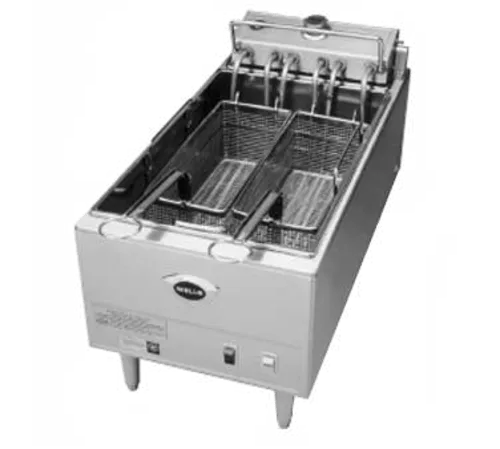 Wells F-1725 electric fryer is built for maximum efficiency and quick product turn-around. This unit is designed for countertop operation to fit a variety of operations and locations. Constructed with a stainless steel body, stainless steel removable kettle, and immersion heating elements which swing up for easy cleaning. Snap-action thermostat with built in high limit safety. Single pot, 40 lb., Two half-size baskets, 208V.