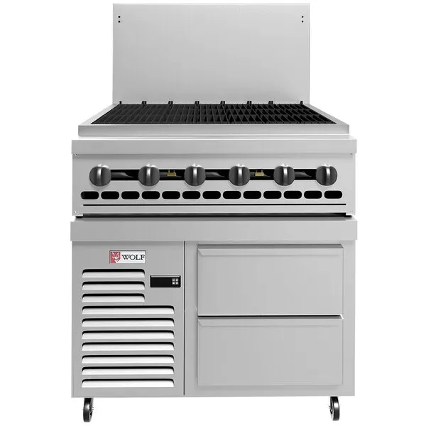 Introducing the ultimate solution for culinary excellence and efficiency: the Challenger Restaurant Range. Designed for professional kitchens, this 36-inch natural gas powerhouse seamlessly combines versatility and reliability. Featuring a robust 36-inch charbroiler and a state-of-the-art convection oven, it empowers chefs to explore a wide range of cooking techniques with precision. The refrigerated base with two drawers offers convenient storage for fresh ingredients, ensuring everything you need is within arm's reach. Crafted with a stainless steel front, sides, and backriser, this range not only exudes modern elegance but also promises durability and ease of maintenance. The fully MIG welded chassis enhances structural integrity, while the six-inch adjustable legs offer stability on any kitchen floor surface. With an impressive 131,000 BTU output, this range provides consistent, high-performance cooking, making it the centerpiece of any busy kitchen. Operating at 115v/60/1-ph with a cord equipped with NEMA 5-15P, it is CSA, CSA Star, and NSF certified, ensuring it meets the highest standards of safety and quality. Elevate your culinary creations with the Challenger Restaurant Range, where innovation meets unmatched functionality for the ultimate cooking experience.